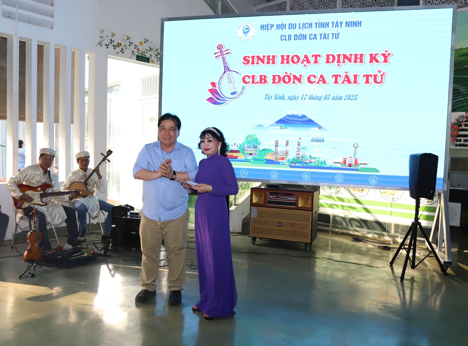 Tại đây, ông Dương Văn Thừa- Phó Chủ tịch Hiệp hội Du lịch tỉnh trao quyết định kết nạp thêm 4 hội viên tham gia vào CLB Đờn ca tài tử, trong đó có Nghệ sĩ ưu tú Thanh Thanh Mai- nguyên Trưởng đoàn Nghệ thuật Cải lương Tây Ninh.