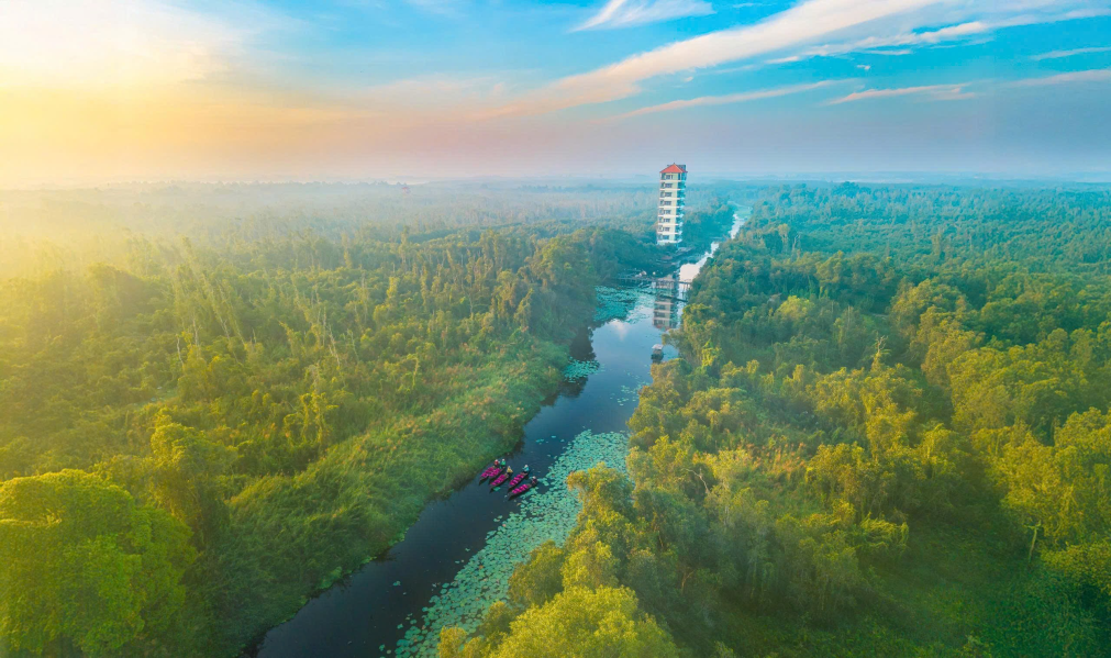 2. Tháp quan sát cao 38m nằm ngay giữa trung tâm rừng tràm