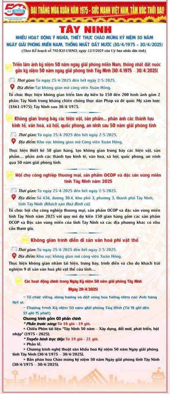 NHIỀU HOẠT ĐỘNG, Ý NGHĨA THIẾT THỰC CHÀO MỪNG KỶ NIỆM 50 NĂM NGÀY GIẢI PHÓNG MIỀN NAM, THỐNG NHẤT ĐẤT NƯỚC (30/4/1975 - 30/4/2025)