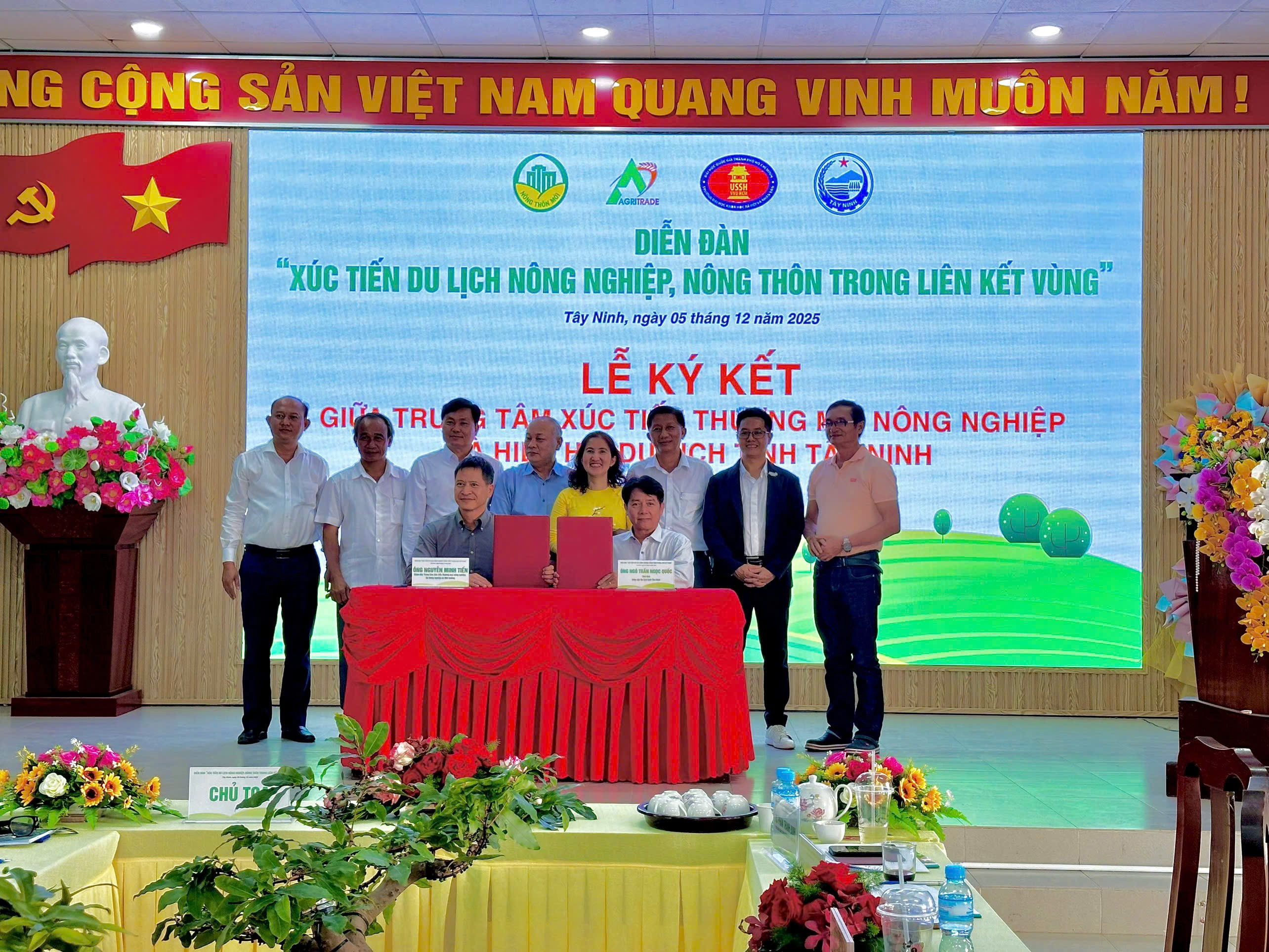 Hình ảnh: Đại diện Lãnh đạo Trung tâm xúc tiến thương mại nông nghiệp ký kết với Hiệp hội du lịch Tỉnh Tây Ninh